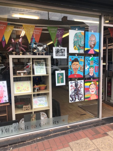 Our amazing creations were in place in the ‘Hope’ charity shop in Sherwood, and it was great to have our mix of paintings, ceramics, prints, and sculptural bowls displayed in the windows all week for our local community to look at!